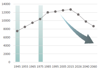 2060年には8,674万人に人口減少