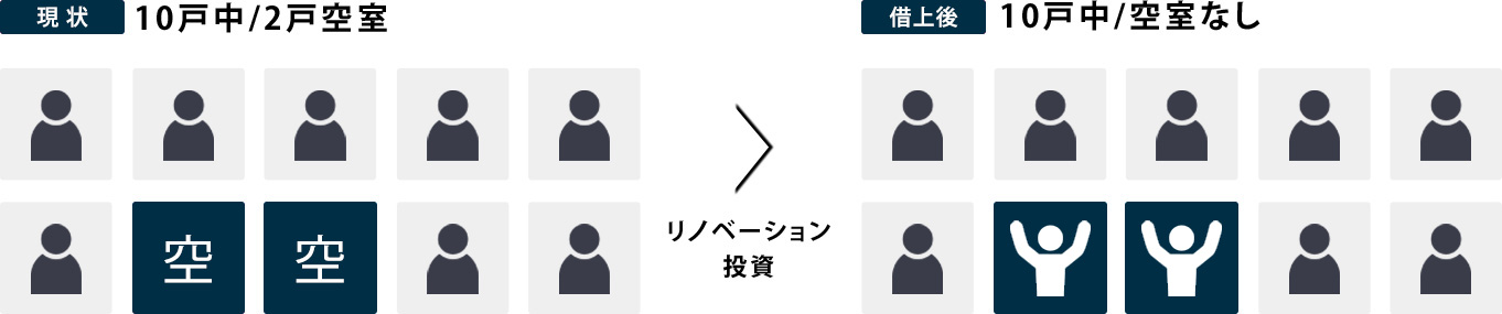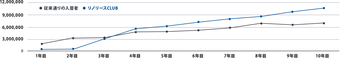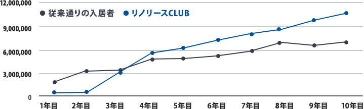 大家様の全ての空室を、10年後リノリースCLUBが満室にしてお返しします。