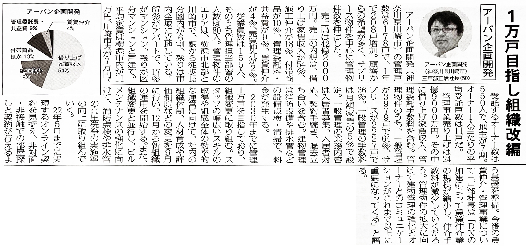 リノリースCLUB加盟店「株式会社アーバン企画開発 様」の記事が2021年7月26日発行の全国賃貸住宅新聞に掲載されました。