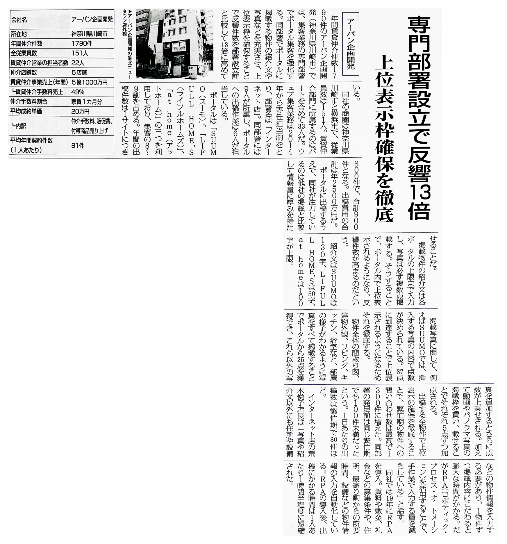リノリースCLUB加盟店「株式会社アーバン企画開発 様」の記事が2022年11月7日発行の全国賃貸住宅新聞に掲載されました。