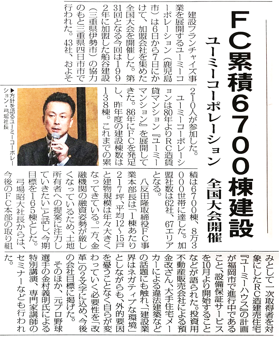リノリースCLUB加盟店「ユーミーコーポレーション株式会社様」の記事が2019年6月17日発行の全国賃貸住宅新聞に掲載されました。