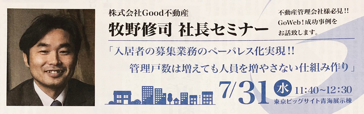 リノリースCLUB加盟店【株式会社Goodホームデザイン 代表取締役 牧野修司様】が全国賃貸住宅フェアin東京にてセミナーを開催します。