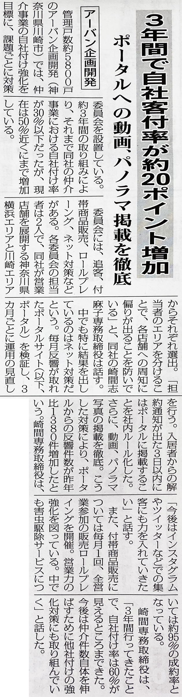 リノリースCLUB加盟店「株式会社アーバン企画開発 様」の記事が2019年12月9日発行の全国賃貸住宅新聞に掲載されました。