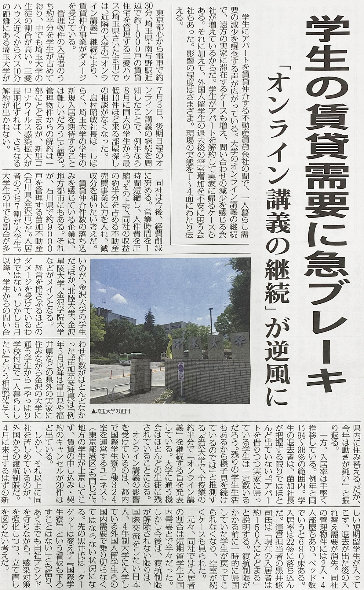 2020年8月10日発行の全国賃貸住宅新聞に掲載されました。