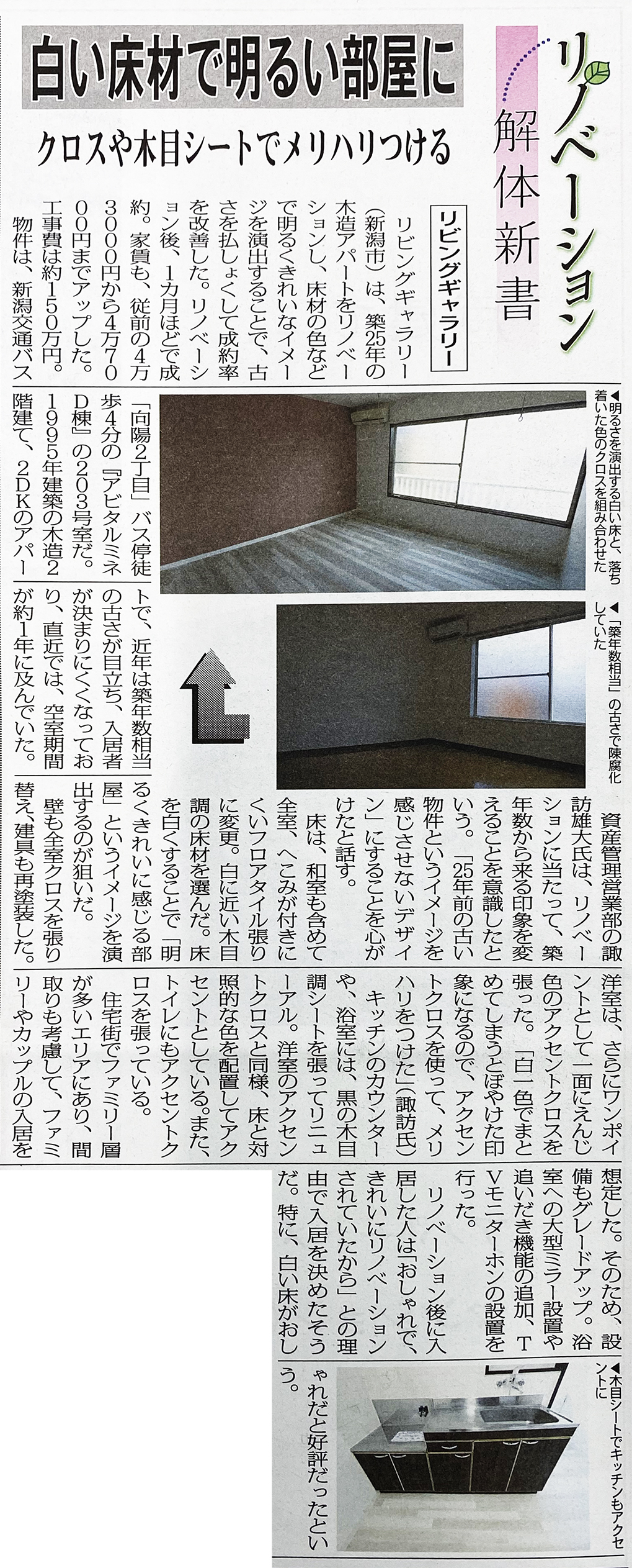 リノリースCLUB加盟店「株式会社リビングギャラリー 様」の記事が2020年9月21日発行の「全国賃貸住宅新聞」に掲載されました。